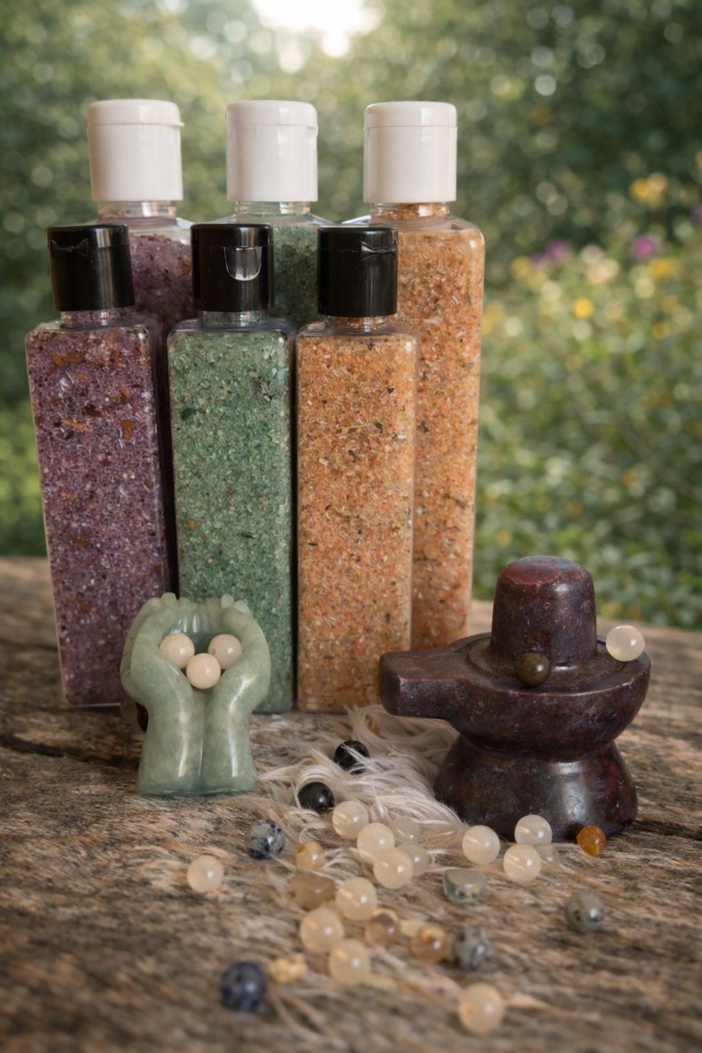 A complete wellness set combining Muscle Relief, Spirituality & Negativity Cleansing bath salts. Designed to support physical relaxation, emotional balance & spiritual well-being in one package.