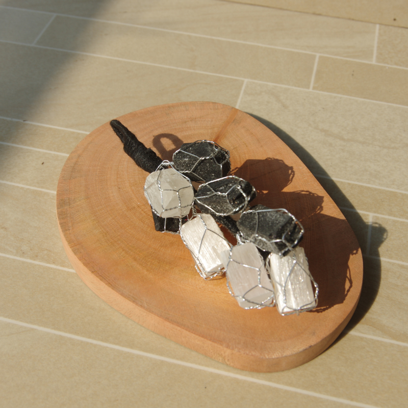 Selenite is associated with peace, clarity & energy cleansing, while Black Tourmaline is known for protection, grounding & shielding against negativity.